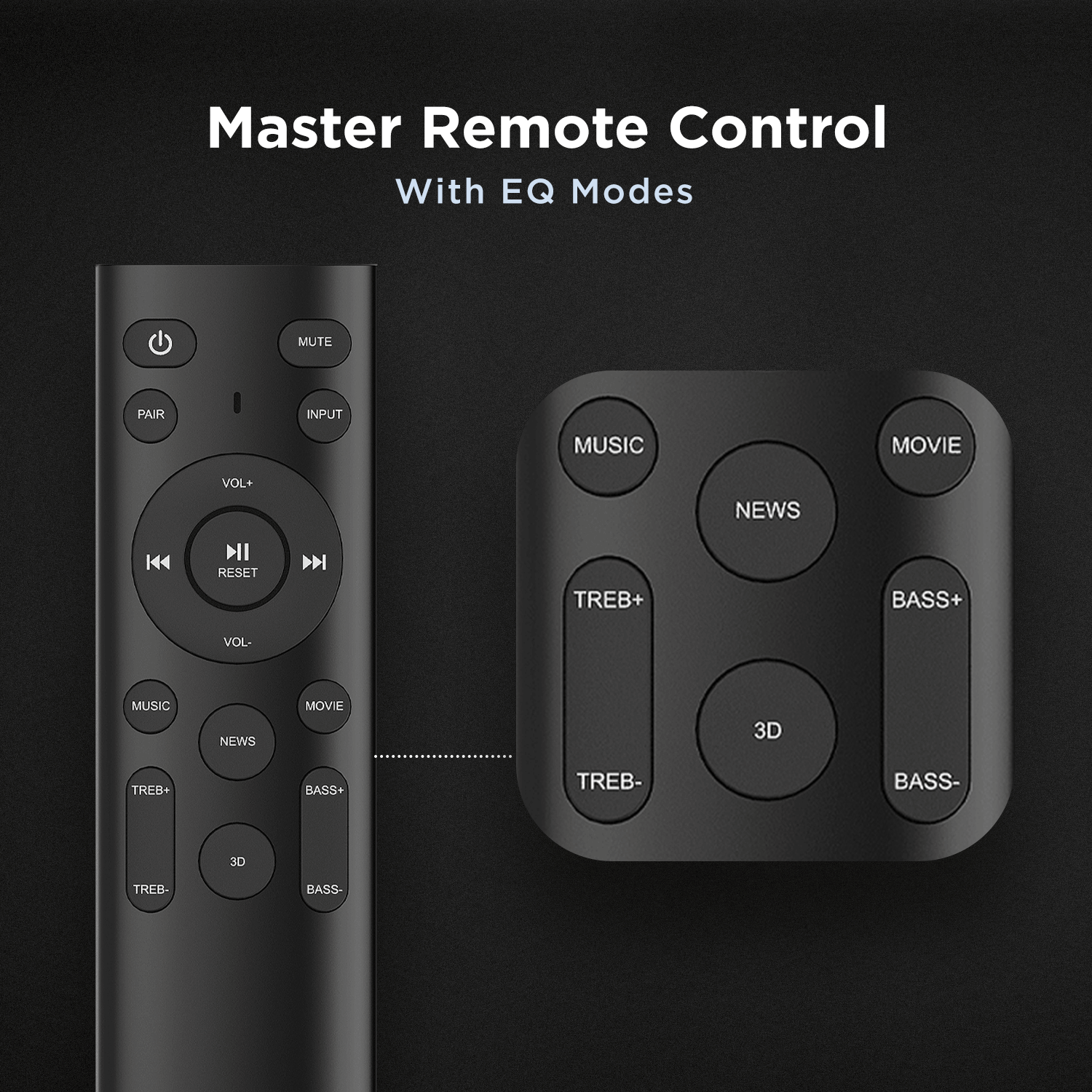 Choose from multiple EQ modes whether its music, movies, news or 3D. Aavante Bar 1150D comes equipped with a mode tailor your sound for different scenarios.