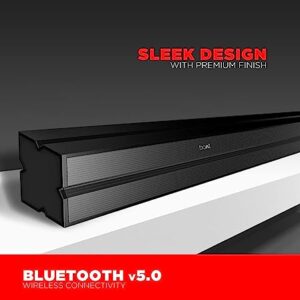 It is time for you to not just hear but feel the drop with Aavante Bar 1300. Let the boAt Signature Sound take you on a rollercoaster ride that only goes up with the immersive sound giving a thumping cinematic experience. With 60W RMS bring theatre like sound filling up the whole room, every corner, every nook. The multiple connectivity modes- USB, AUX, BT, and Optical HDMI(arc) make sure you listen to music or enjoy that first movie on the checklist at leisure. whether easy remote control access or seamless connectivity with Bluetooth v5.0, Aavante Bar 1300 has got it all! 2.0 Channel Sound is here to envelop you and take you to a parallel universe with its balanced sound and deep bass for an auditory experience like no other. Aavante Bar 1300 comes with Entertainment EQ modes – music, movies, news, and 3D and a sleek design with premium finish that will make you dance to the tunes while flaunting your moves and style!