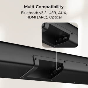 Enjoy seamless connectivity and enhance your sound with versatile connectivity options including Bluetooth v5.3, USB, AUX, HDMI (ARC) and Optical.