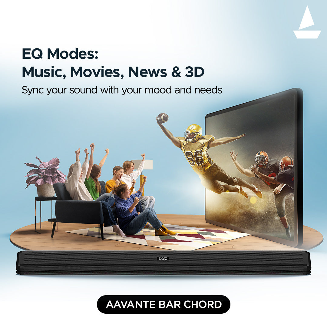 Amp up your entertainment with the Aavante Bar Chord! Experience 160W RMS boAt Signature Sound, customizable with Bass & Treble Controls. Its 2.1 channel system, paired with a wireless subwoofer, delivers rich sound to elevate your audio experience in every way. Mount it on the wall, control it effortlessly with the master remote, and get ready for an unforgettable binge experience!