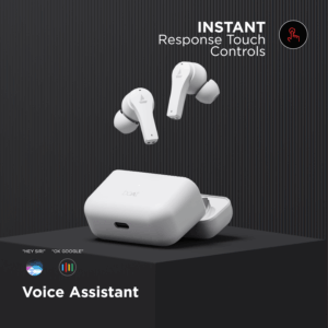 Behold the beauty of a truly wireless listening experience with Airdopes 101 Made in India earbuds. Your connected life is just now away with boAt IWP™ Technology pairs with your device as soon as you open its case. Revel in the joy of quality music with its powerful 13mm drivers that ensure you listen to your favourite tracks with thumping bass and crystal-clear clarity. Its massive playback of 15 Hours lets nothing come in between your jam. Effortlessly switch songs and receive calls with its instant response Touch Controls. Want to know something without making an effort to type it? Make your voice assistant do it for you by activating it through a single touch. All this and more are waiting for your attention. Where are you?