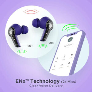 Clear like a crystal. Airdopes 413 ANC comes equipped with dual mics enhanced with ENx™ Technology which greatly enhances call quality and prevents unpleasant noise from being picked up by the microphone. This results in you being heard clearly even in noisy environments.