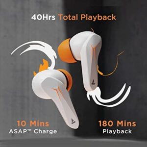 Bring the game on with Immortal 121 and its super low latency of 40ms on BEAST™️ Mode. Just open the charging case lid to pair with your device with IWP™️ Technology and play on with 40 Hours of playback. With ASAP™️ Charge your earbuds will charge up in minutes in case you run out of juice so that you just plug them in and start gaming to level up with boAt.
