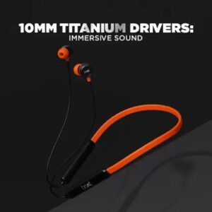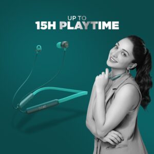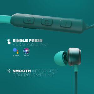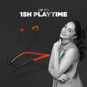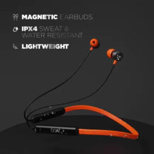 The ergonomically designed neckband dons magnetic earbuds for a hassle-free usage experience.