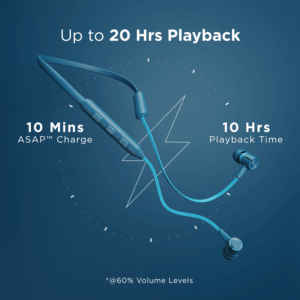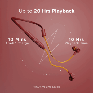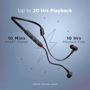 Rockerz 245 Pro is packed with a monstrous battery that empowers you with 20 hours of playback. If it does run out of charge, its ASAP™ Fast charge gives 10 hours of playtime with only 10 mins of charge.