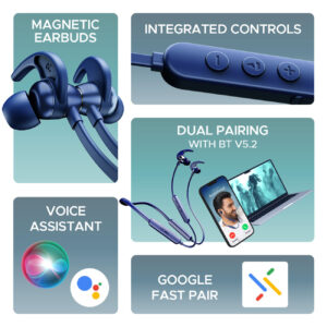 Tap into the world of Rockerz 255 Pro+. The unbeatable boAt Signature Sound comes packed with extra graphene drivers and a bass unlike anything else. Experience the magic of Dual Pairing and instant connectivity with the latest Bluetooth v5.2. These bluetooth earphones can last up to 60 Hours in one go and supports Type-C charging. With ASAP™ Charge, get a playtime of 20 Hours with only 10 Minutes of charge. Its IPX7 rating makes it perfect for an adventurous lifestyle as it is made to resist dust and water scares.