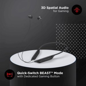 Gaming with lags is gaming without fun. While we constantly innovate to improve your gaming experience, we might have overdone it this time. Enter a lag-free world of gaming with Rockerz 375 wireless earphones. Dedicated Gaming mode and BEAST™ Mode that offers an all-time low latency for you hardcore gamers. Spend more time mastering your skills with ASAP charge that empowers you for another gaming bender within minutes of charge. We’ve also added a dedicated button to switch quickly to the Gaming mode. What else could you ask for? Rockerz 375 – built for passionate gamers.