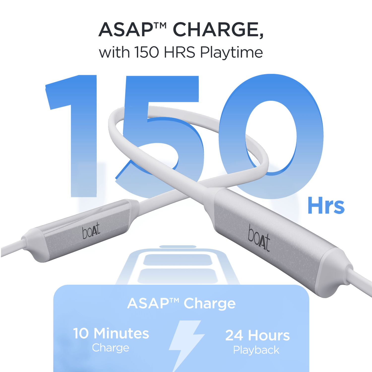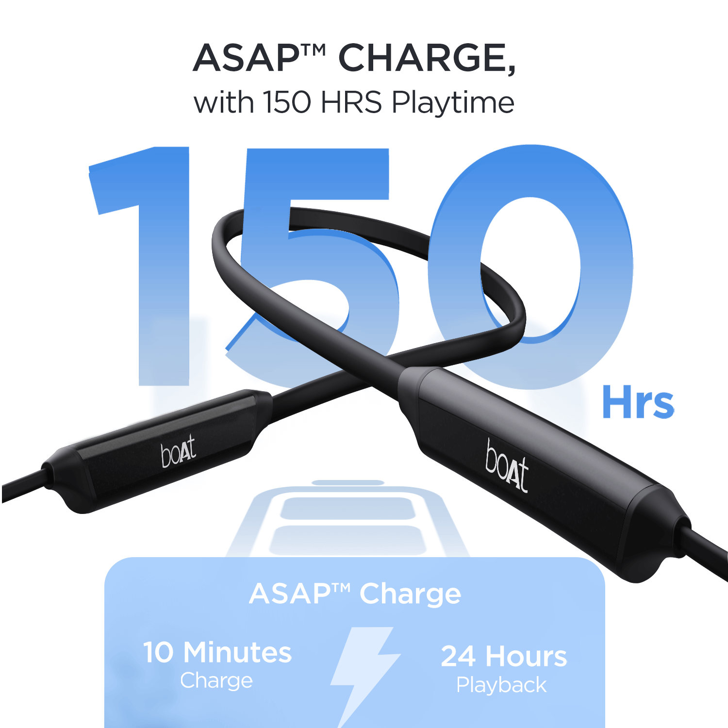 Your weekdays will come to an end but Rockerz Trinity with its massive 150 Hours playback will still go on. Boost your wireless experience with industry-leading ASAP™ Charge Technology of Rockerz Trinity that fuels your device for an unparalleled playback of up to 24 Hours with just 10 Minutes of charge.