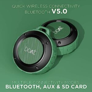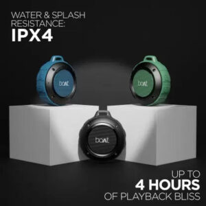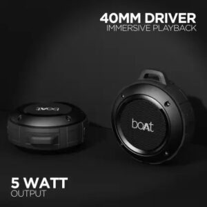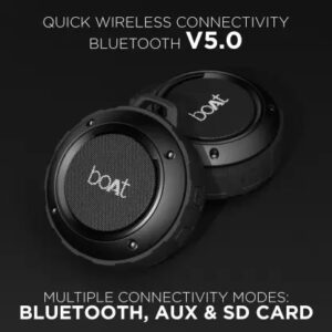 Immerse in Nirvana with boAt Stone 160 wireless portable speaker. The speaker comes equipped with 40mm dynamic drivers for an immersive audio experience. It supports instant wireless connectivity with the latest Bluetooth v5.0. One may elevate the surrounding vibes with Stone 160 in many ways apart from the wireless functionality: it comes equipped with the provision for AUX and SD Card connectivity. The lightweight ergonomics offers enhanced portability as one just has to sling the speaker with the help of its carabiner while on the move. Immerse into the realm of Nirvana wherever you are, with boAt Stone 160. It has an IPX4 rated water resistance for carefree listening time.