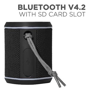 The game of portability just got a boost with the boAt Stone 170 best bluetooth speaker, flip your scene anywhere anytime with the full 5W’s of power. A compact, lightweight and IPX 6 Water Resistant design makes it the perfect companion for a number of sceneries. Stay prepared with the boAt Stone 170. It is packed with a 1800mAh battery, with a push of up to 6 hours of playtime per listening session. So set the mood and accentuate the vibe with the boAt Stone 170. Pick your method of access with Wireless Bluetooth V5.0 and an SD card slot making it perfect for all situations. Extremely simple to navigate, utilize the integrated controls to access a wide range of functions. This includes True Wireless Function, meaning that you can set up two at the same time.