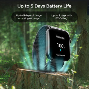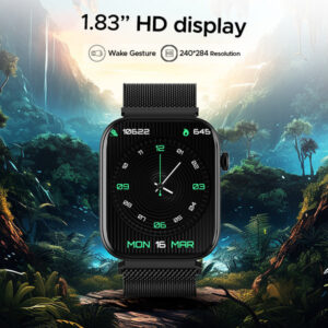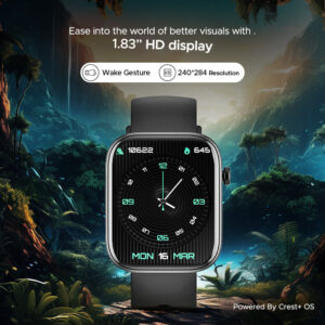 Witness the 1.83″ HD Display, where vibrant visuals come alive at every glance. Furthermore, its Wake Gesture ensures a seamless and delightful experience with every interaction while saving on the battery of your watch when you are not looking at it.