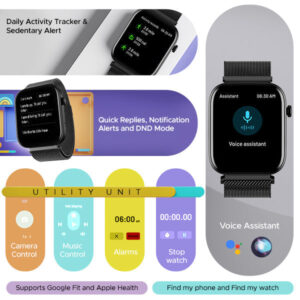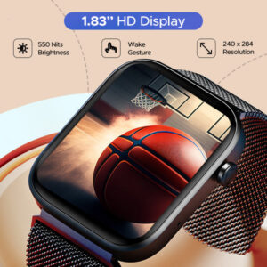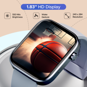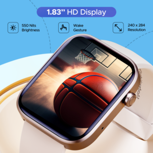 Immerse yourself in a visual delight with the expansive 1.83″ HD Display of this smartwatch, boasting vibrant visuals that come to life. Not only this but with its intuitive wake gesture, you can light up your display without hassle.