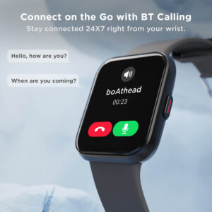 With a premium 1.69 HD display, experience vivid colour production that presents your world in detail with clear insights. Designed to suit your style with 100+ watch faces, you’ll always stand out with boAt Wave Fit Call.