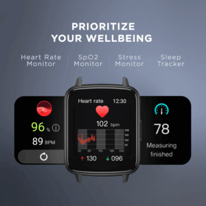 Keep all those stressors at bay with its smart health tracker that constantly monitors your heart rate and blood oxygen levels. Begin your journey to a healthier lifestyle with keen insights about your health status.