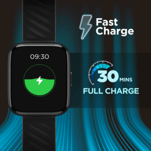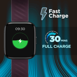 Charge from 0 to 100% in just 30 mins with a Fast Charging Chip and use your Watch Wave Pro for an entire week.