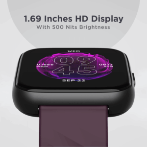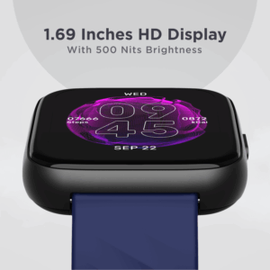 1.69″ (4.29 Cms)colour HD display with a square dial and 500 Nits brightness that makes everything look larger than life.
