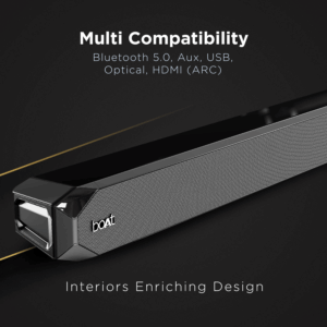With Bluetooth 5.0, USB, AUX, HDMI (ARC) and optical cable port, it comes with a variety of connectivity options to choose from.
