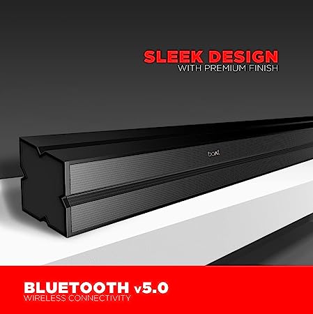 It is time for you to not just hear but feel the drop with Aavante Bar 1300. Let the boAt Signature Sound take you on a rollercoaster ride that only goes up with the immersive sound giving a thumping cinematic experience. With 60W RMS bring theatre like sound filling up the whole room, every corner, every nook. The multiple connectivity modes- USB, AUX, BT, and Optical HDMI(arc) make sure you listen to music or enjoy that first movie on the checklist at leisure. whether easy remote control access or seamless connectivity with Bluetooth v5.0, Aavante Bar 1300 has got it all! 2.0 Channel Sound is here to envelop you and take you to a parallel universe with its balanced sound and deep bass for an auditory experience like no other. Aavante Bar 1300 comes with Entertainment EQ modes – music, movies, news, and 3D and a sleek design with premium finish that will make you dance to the tunes while flaunting your moves and style!