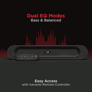 Bring your home to life with the powerful Aavante Bar 553 Soundbar. Don’t just listen, but feel every beat come to life with the power of 16W RMS combined with Dual Passive Radiators. This portable soundbar comes with 4.5 hours of playtime, ensuring that the party never stops! Enjoy Multiple Connectivity Modes with built-in mic. Equipped with Bluetooth 5.0, you can experience hassle-free connectivity. Not just this, choose between deep bass or balanced with its Dual EQ Modes. The Aavante Bar 553 is supremely stylish & portable, making your home never run out of style!