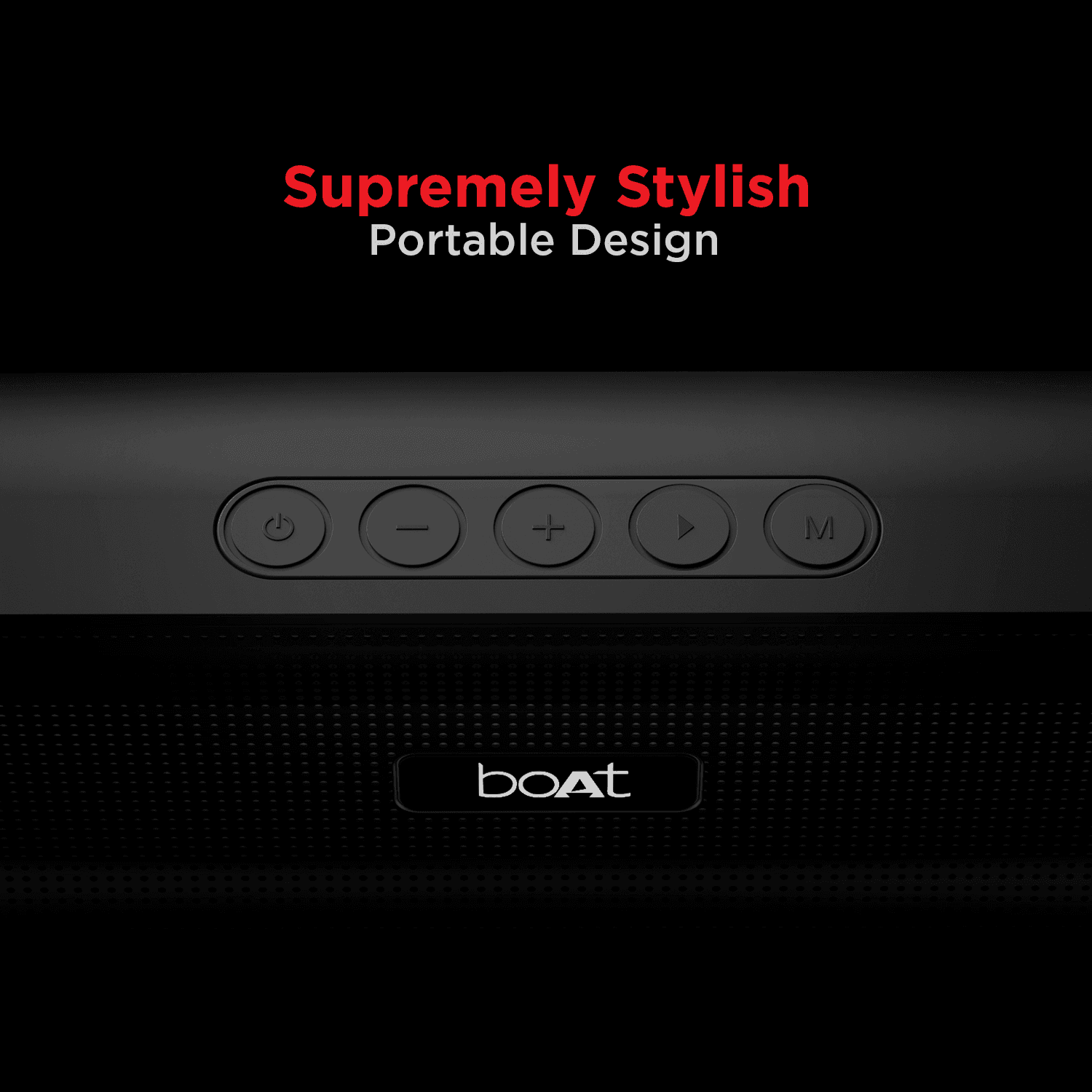 boAt Aavante Bar 558 – Best Wireless Soundbar Soundbar. Don’t just listen, but feel every beat come to life with the power of 16W RMS combined with Dual Passive Radiators. This portable soundbar comes with 4.5 hours of playtime, ensuring that the party never stops! Enjoy Multiple Connectivity Modes with built-in mic. Equipped with Bluetooth 5.0, you can experience hassle-free connectivity. Not just this, choose between deep bass or balanced with its Dual EQ Modes. The Aavante Bar 558 is supremely stylish & portable, making your home never run out of style!