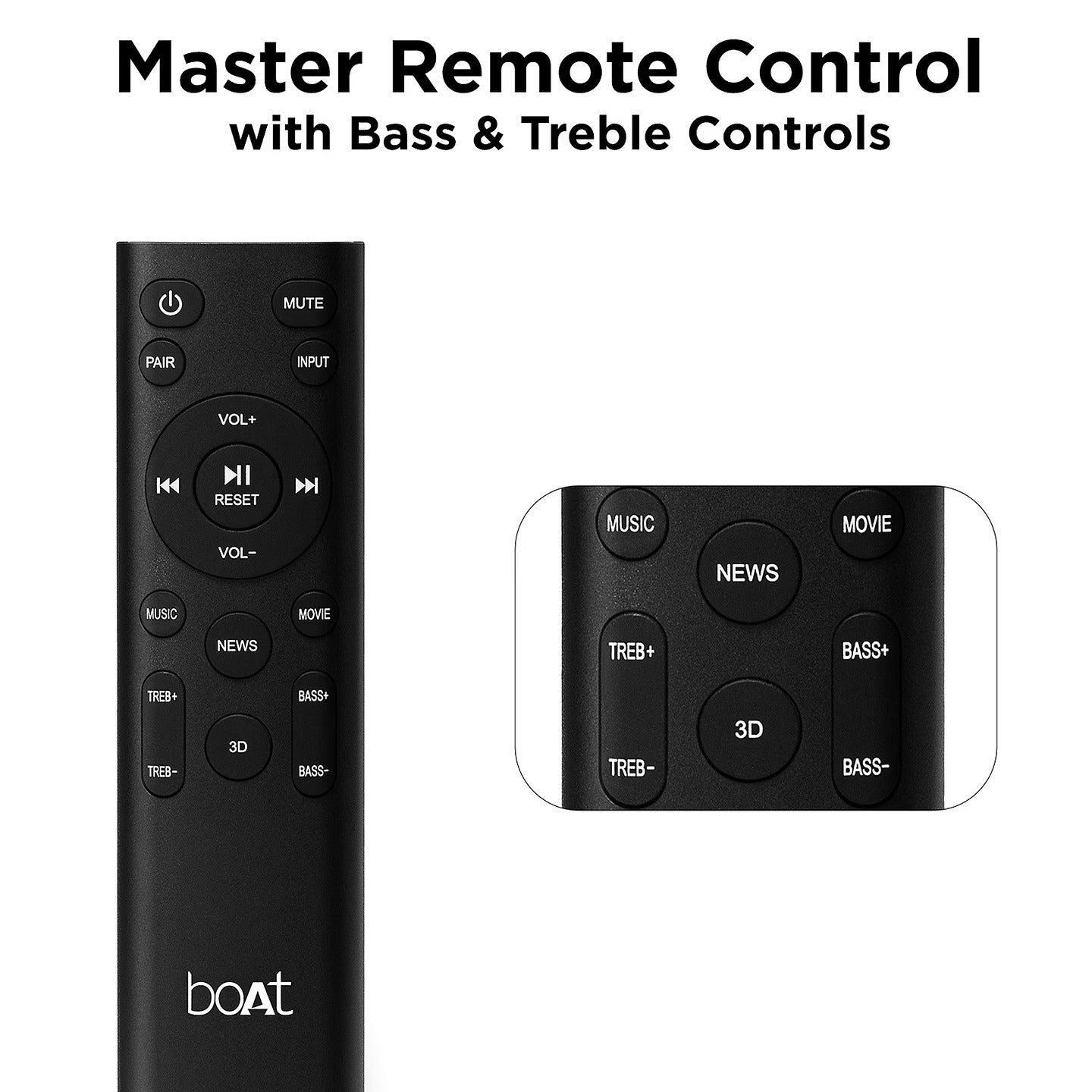 Tailor the bass and treble to your liking using the master remote control for an optimal listening experience with our home theatre speaker.