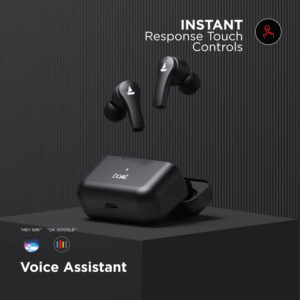 Behold the beauty of a truly wireless listening experience with Airdopes 101 Made in India earbuds. Your connected life is just now away with boAt IWP™ Technology pairs with your device as soon as you open its case. Revel in the joy of quality music with its powerful 13mm drivers that ensure you listen to your favourite tracks with thumping bass and crystal-clear clarity. Its massive playback of 15 Hours lets nothing come in between your jam. Effortlessly switch songs and receive calls with its instant response Touch Controls. Want to know something without making an effort to type it? Make your voice assistant do it for you by activating it through a single touch. All this and more are waiting for your attention. Where are you?