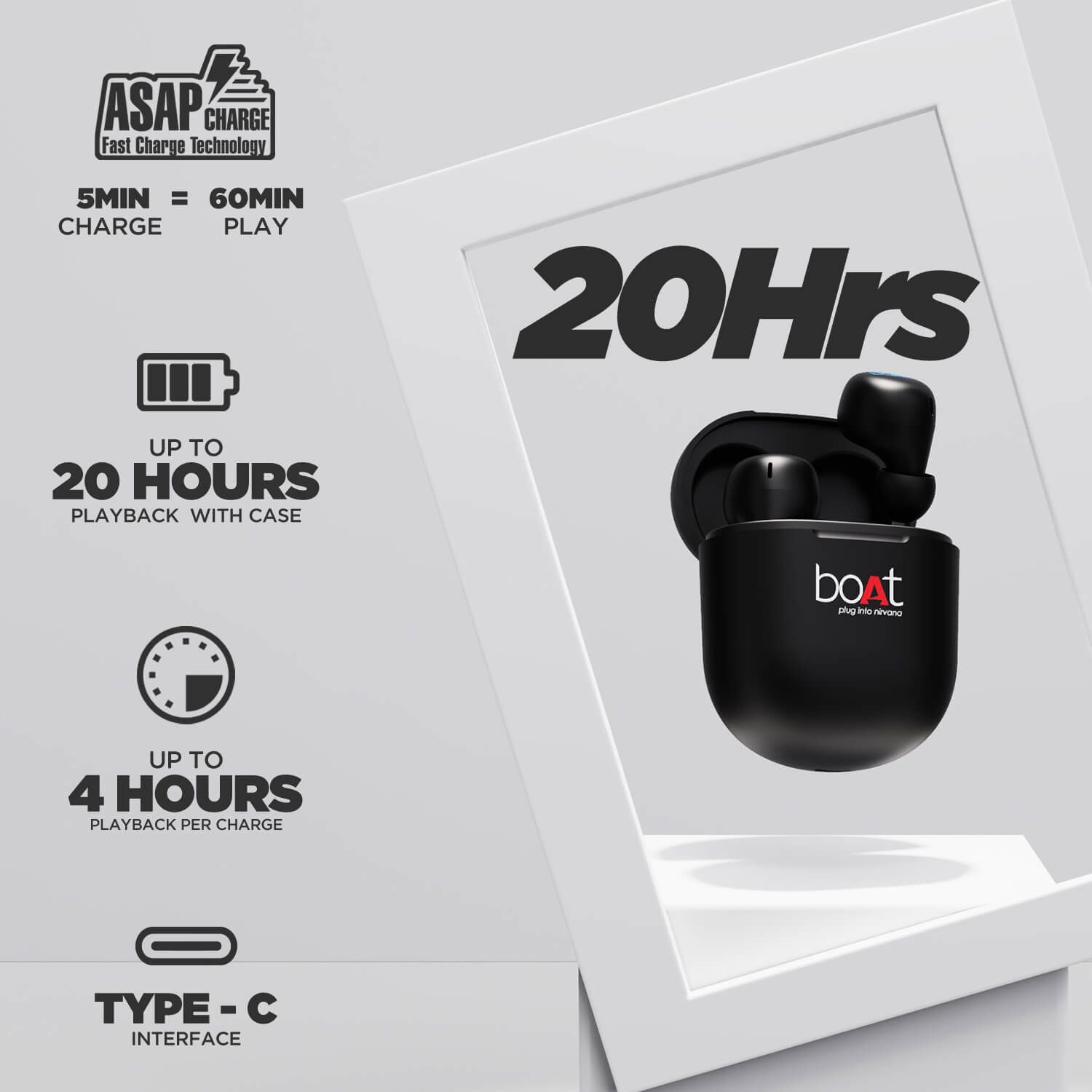 Immerse in your playlist for a long time as you don Airdopes 381 Make in India with pride. Its 20 Hours non-stop playback will keep your charging worries at bay. With IPX5, Airdopes 381 Make in India is water resistant, making it perfect for outdoor adventures. Groove on your tunes with its 7mm drivers.