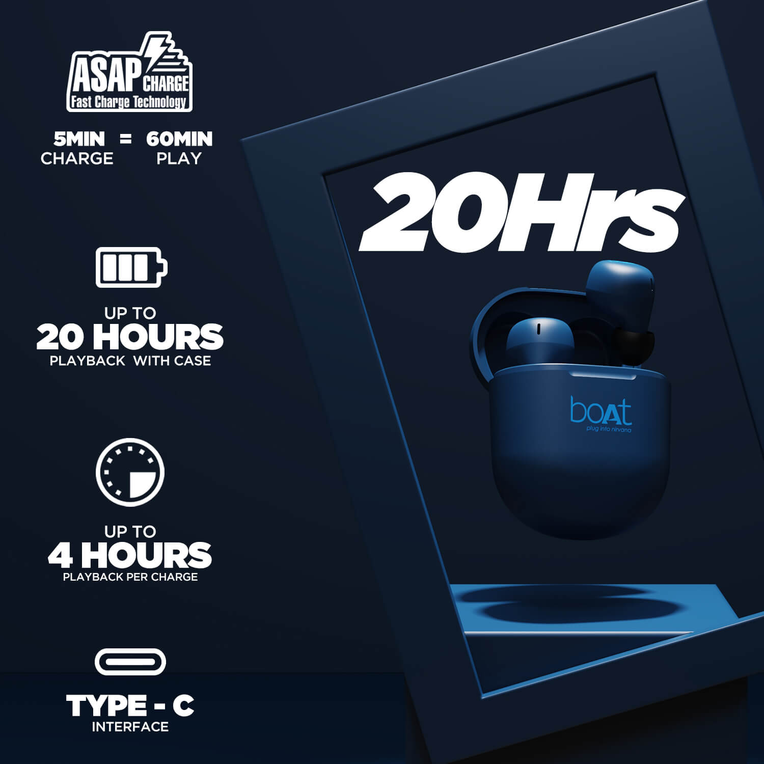 Its power-packed 500mAh charging case ensures 4 times the charge for the earbuds.