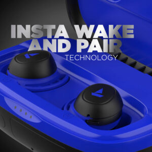 Plug into the most seamless workouts with these true wireless earbuds designed for sweat, splash, and water resistance. The perfect Secure Fit for outdoors with advanced capacitive touch controls to power your non stop hustle. Hit the gym or play on the field, these earbuds remain intact. Experience 6mm drivers for immersive sound. These noise cancelling bluetooth earbuds come with the latest V5.0 technology for instant connectivity. Insta Wake N’ Pair Technology powers on their connection mode as soon as they’re out of the earbuds case.
