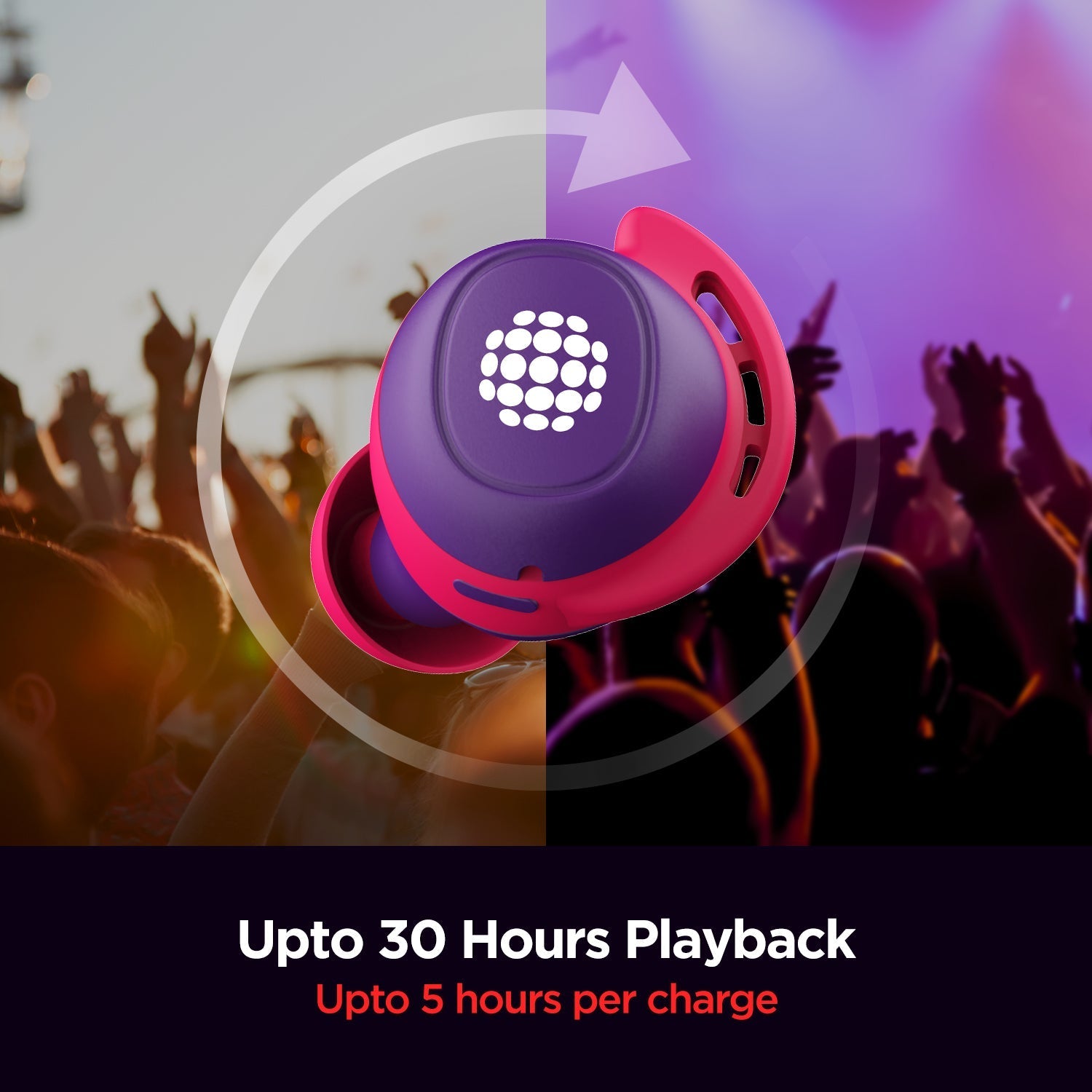 Let the madness loose as you groove non-stop with 5 Hours of playtime per charge!