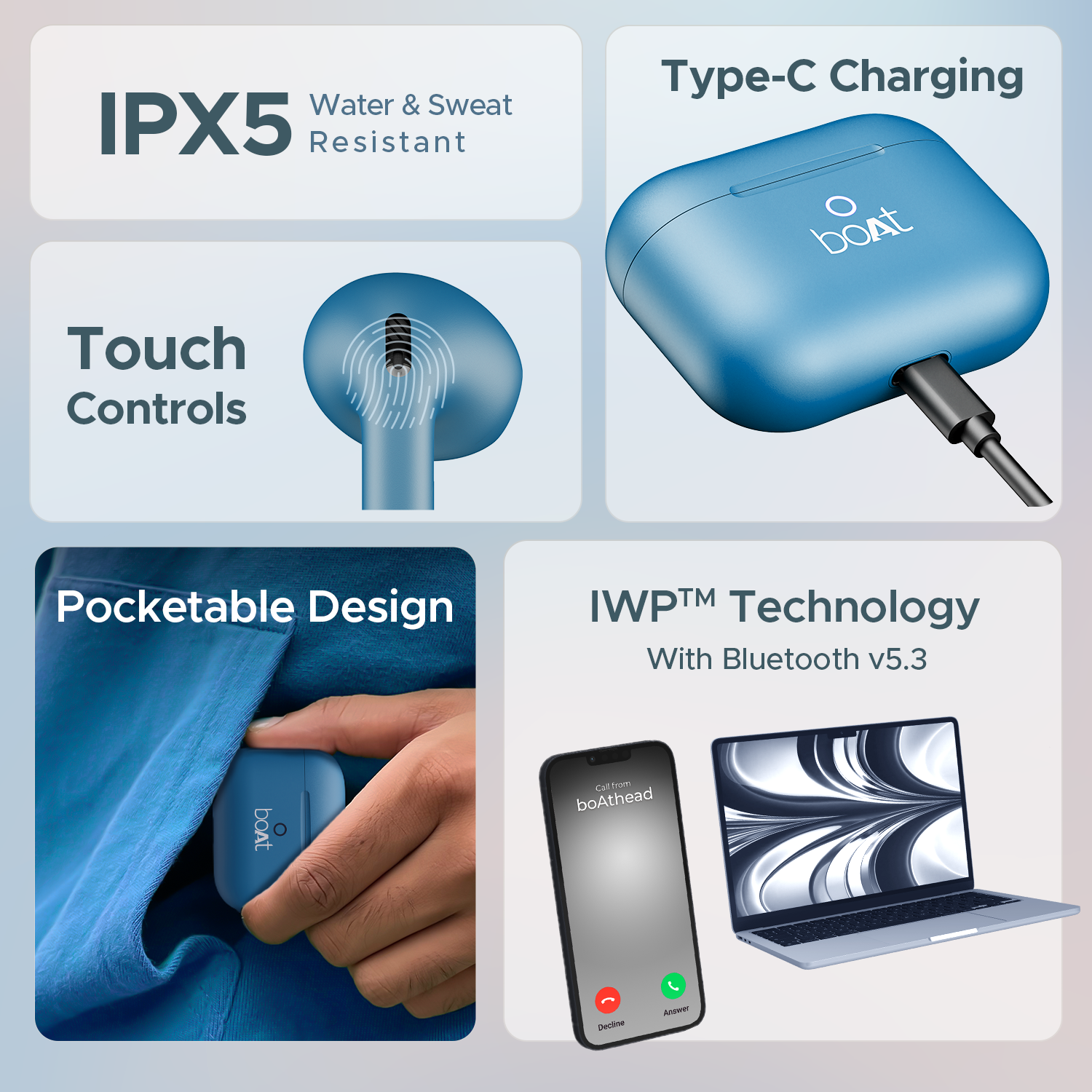 Simplify your audio experience with the Airdopes Alpha. Our IWP™ (Insta Wake N’ Pair) Technology ensures effortless and automatic device connection. Just open the case, and your earbuds are ready to rock!