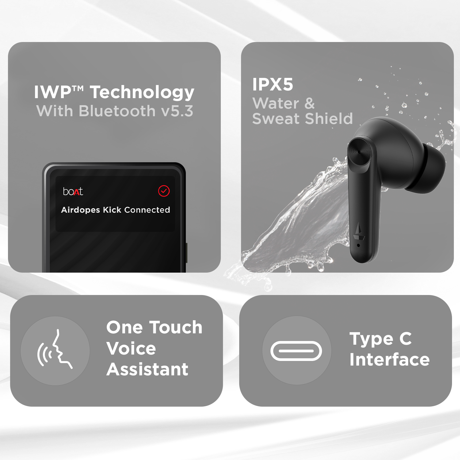 Talk with clarity everytime you talk using boAt Airdopes Kick. Featuring Quad Mics with ENx™ Technology, it pics only your voice eliminating the background sound.