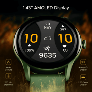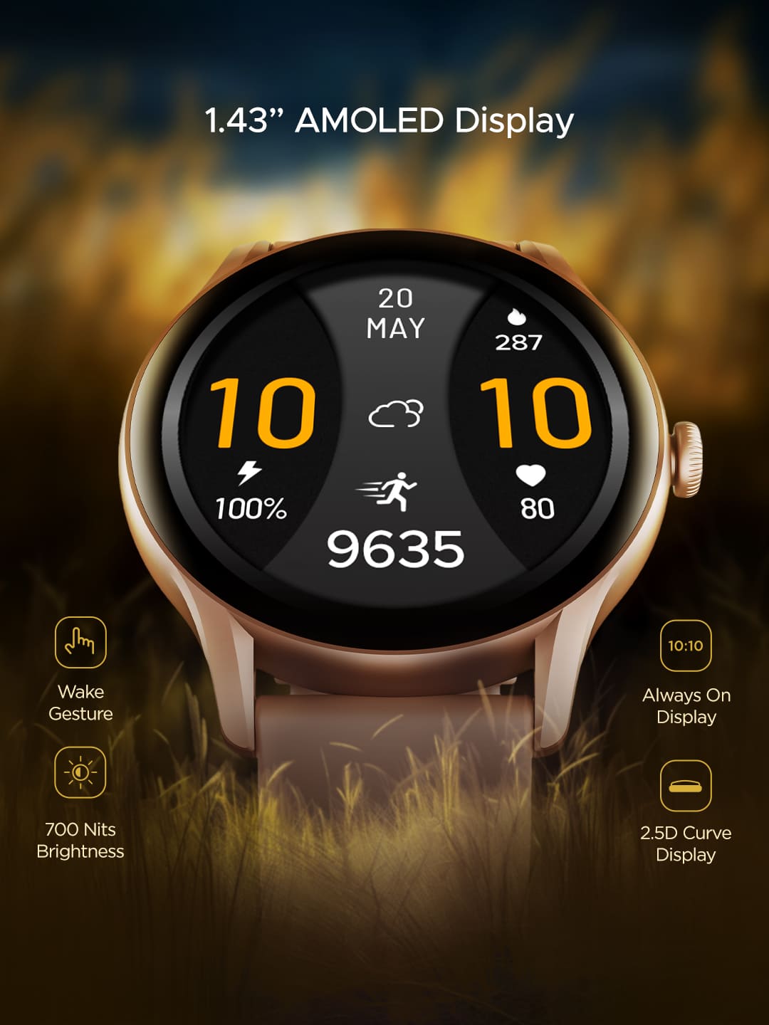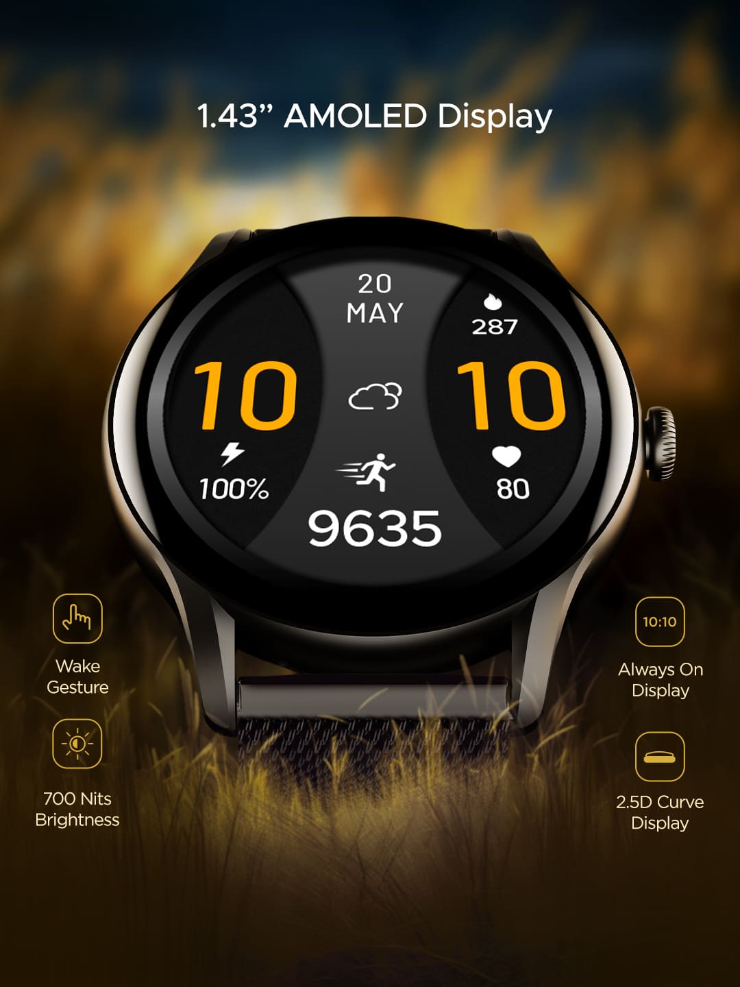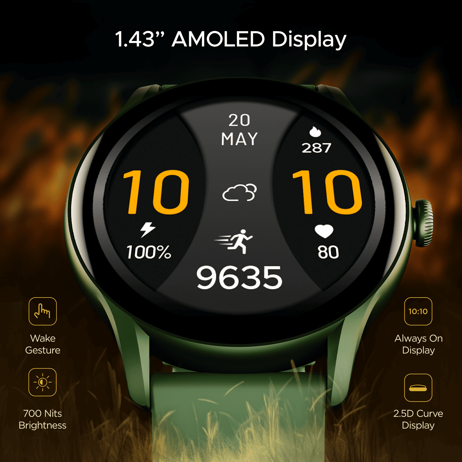 Experience excellence with 1.43” AMOLED Display that gets you unmatched clarity and rich colour output. Choose to keep it on Always On Display never miss any detail with its 700 Nits brightness.