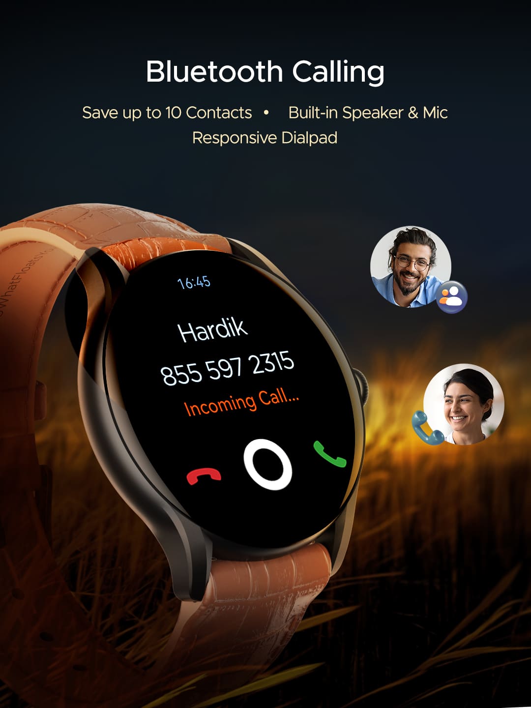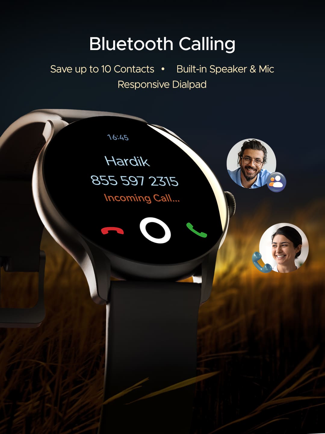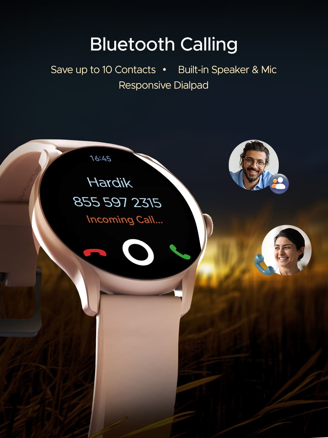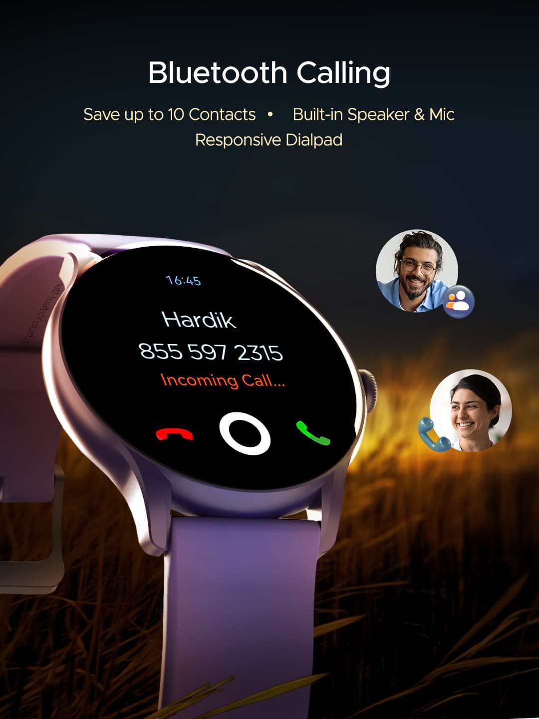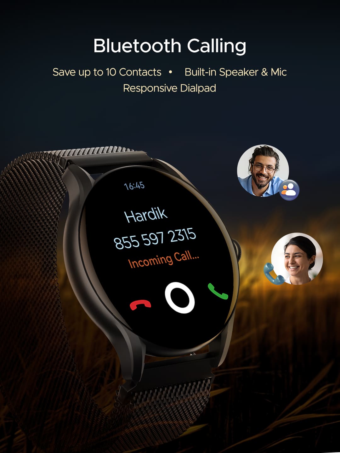 Save up to 10 contacts on your watch and talk to them with Bluetooth Calling using the built-in mics. With a touch responsive dial pad, you can dial the number you want and talk as you go on our BT calling smart watch.