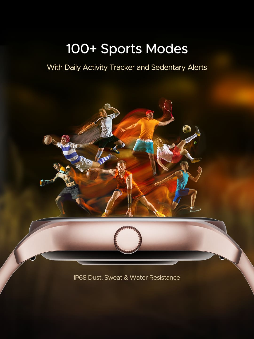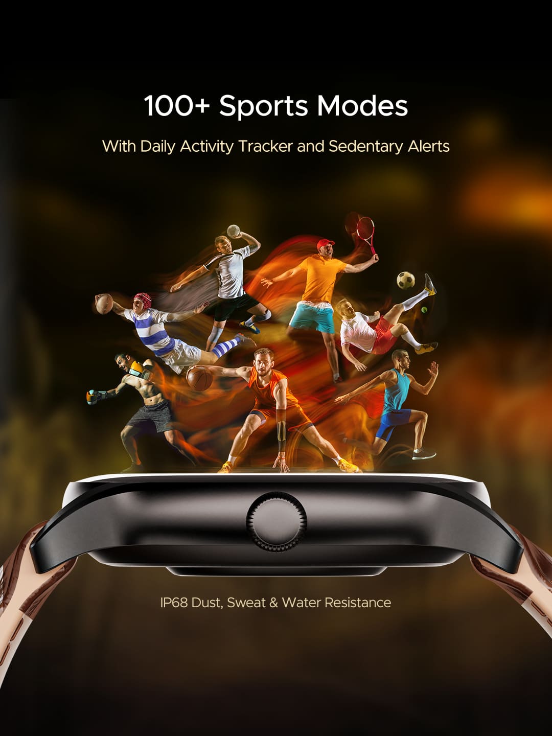 Ace your fitness with boAt Lunar Connect Ace. Be it indoor or outdoor activity, it has all the modes you need. Choose from a set of 100+ sports modes and get going on whatever sport you play. For a complete health experience, our smart watch also has heart rate, SpO2 and sleep monitoring as well as guided breathing and menstrual tracking.