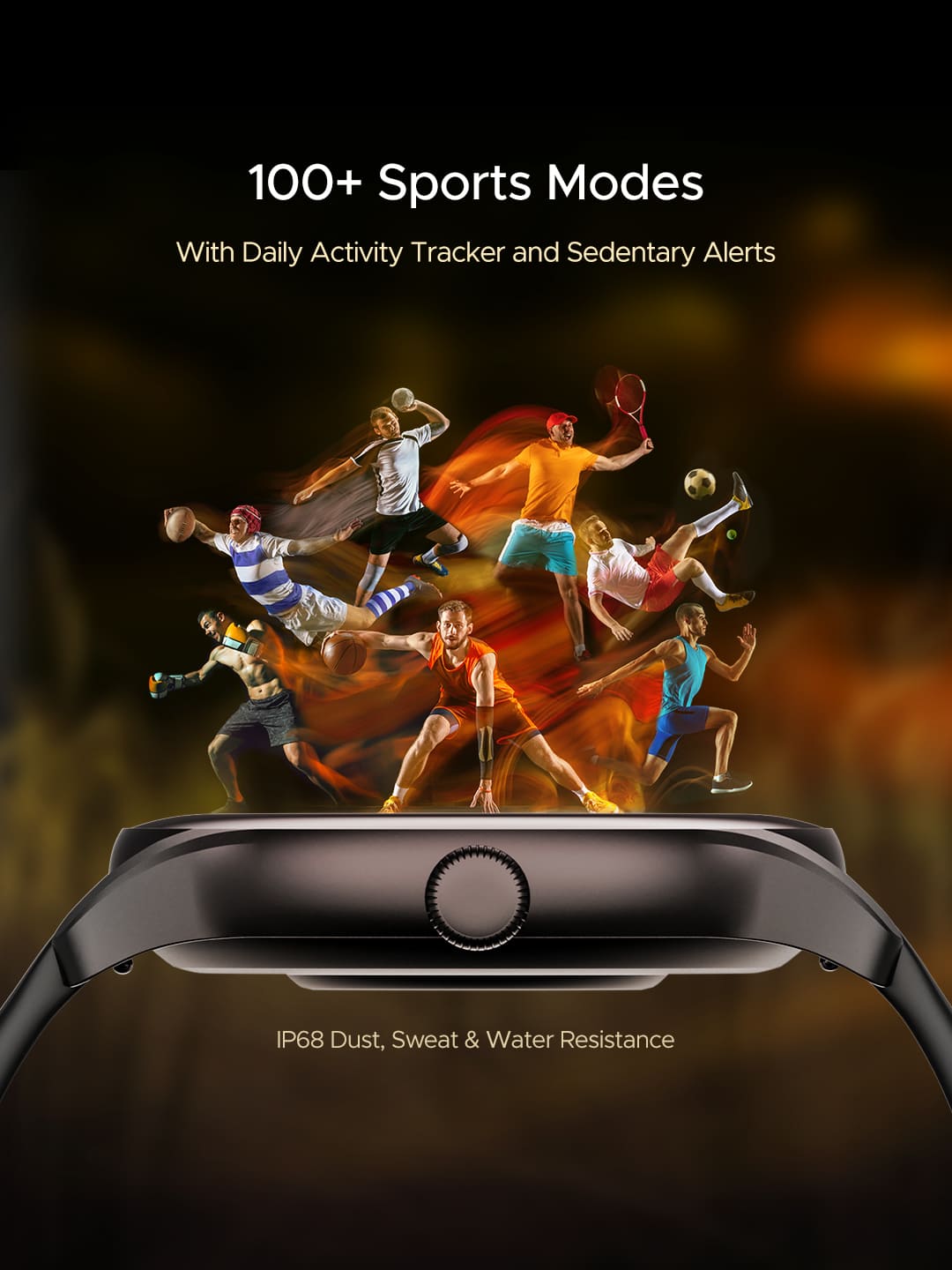 Select from options of a metal mesh, leather and silicone strap to go with your personality. To add another dimension to your style, there are also 100+ watch faces to choose from.