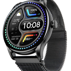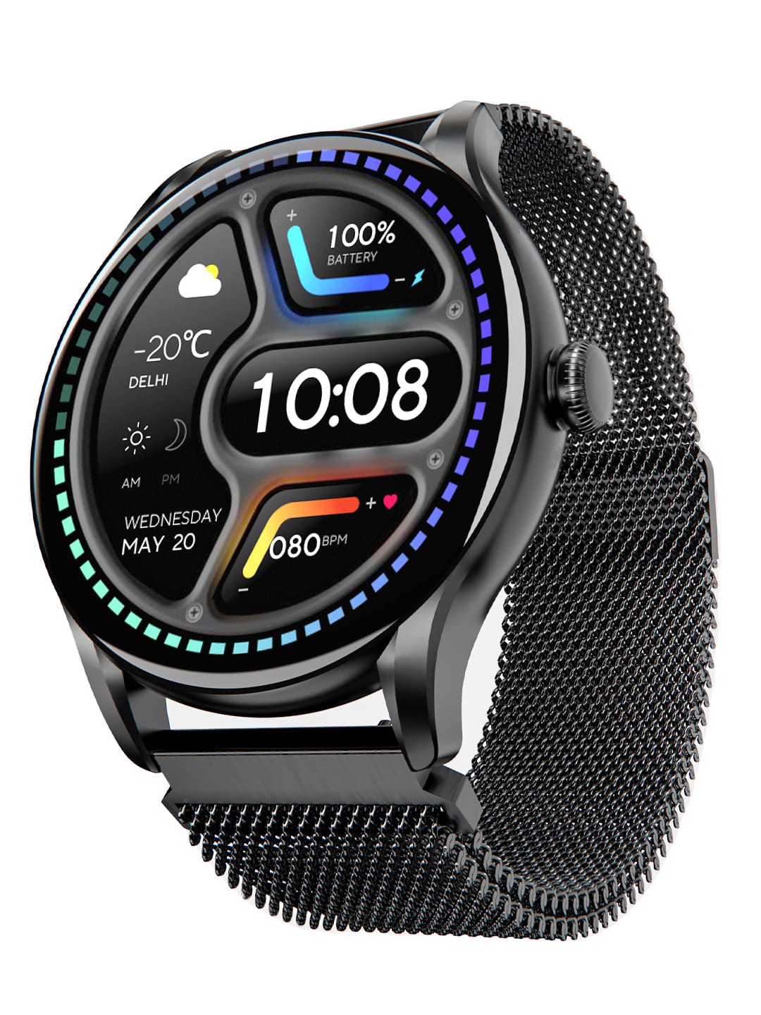 Experience excellence with boAt Lunar Connect Ace smartwatch. Its 1.43″ AMOLED Display delivers crystal-clear clarity and vibrant colors so you don’t miss any details. Stay connected with Bluetooth calling and save up to 10 contacts for quick dialing. Choose your style with metal mesh, leather, or silicone strap options as you add the edge by changing the watch face everyday from the 100+ options. Packed with 100+ sports modes, heart rate, SpO2, and sleep monitors, it helps you train like an ace and keep a track of your health on the go. With Lunar Connect Ace, stay informed and empowered as you unleash your potential.