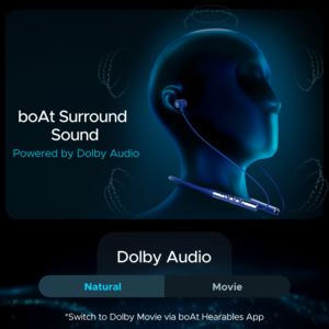 Feel the magic of boAt surround sound powered by Dolby Audio. With every beat coming alive now you can experience media like never before. Get on the boAt Hearables app and toggle between Dolby Movie and Dolby Natural to suit your preference.