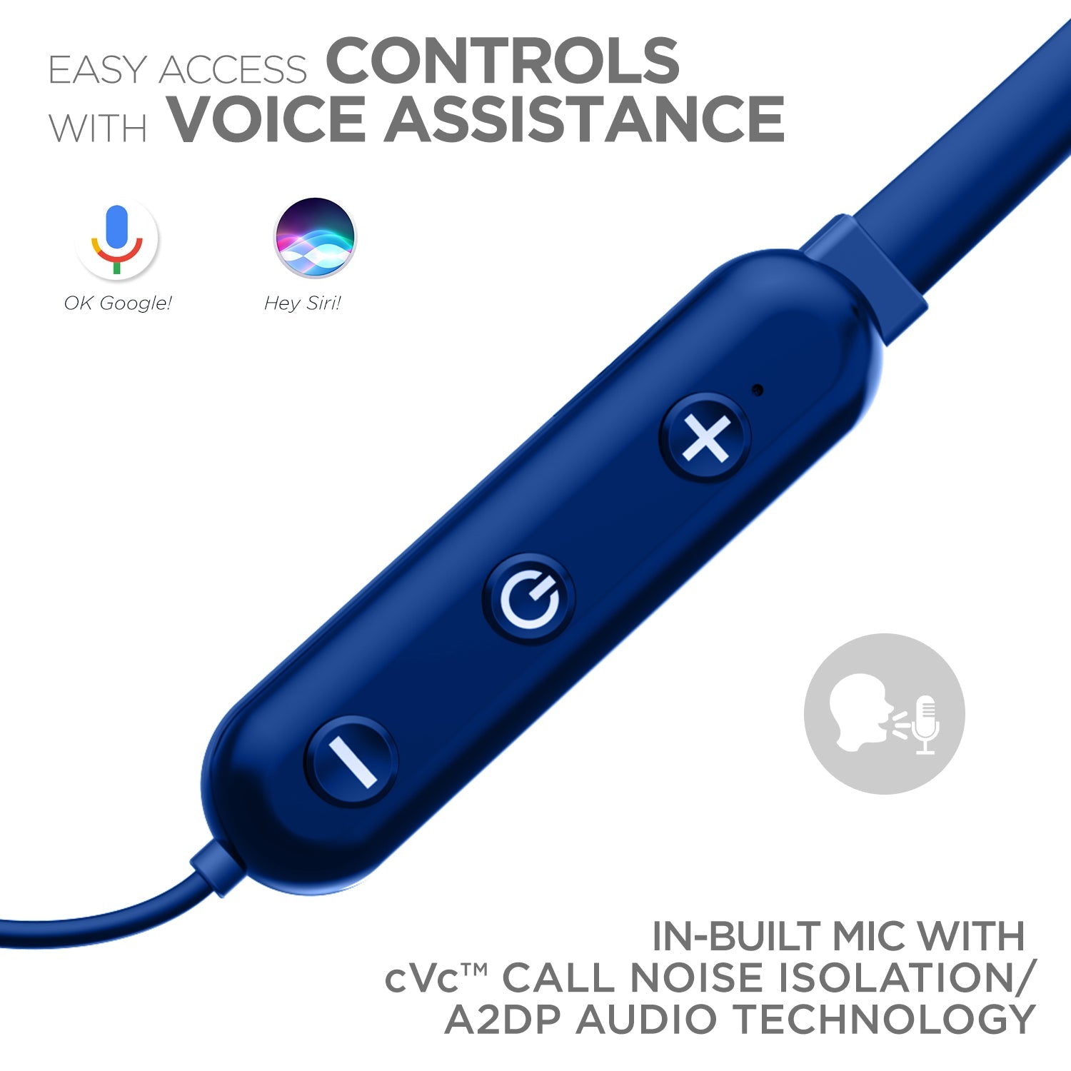 Allows you to control a wide range of functions with just the multifunction button that allows calling (with in-built mic), and voice assistant.