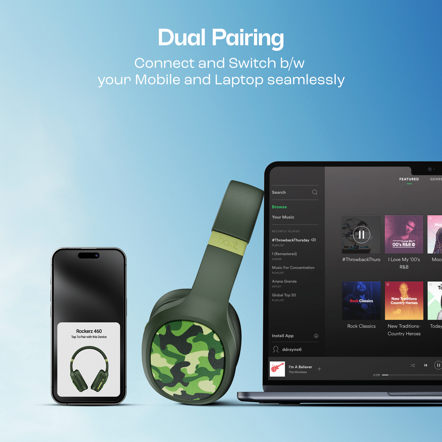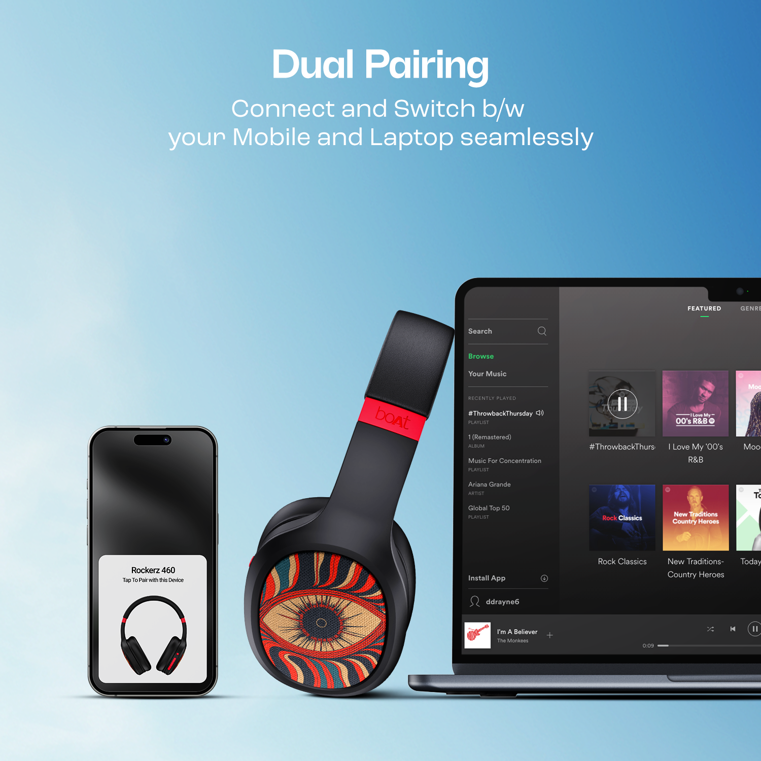 Switch between videos on your laptop and phone calls in a jiffy. Dual Pairing on Rockerz 460 makes it simpler to switch between multiple devices.