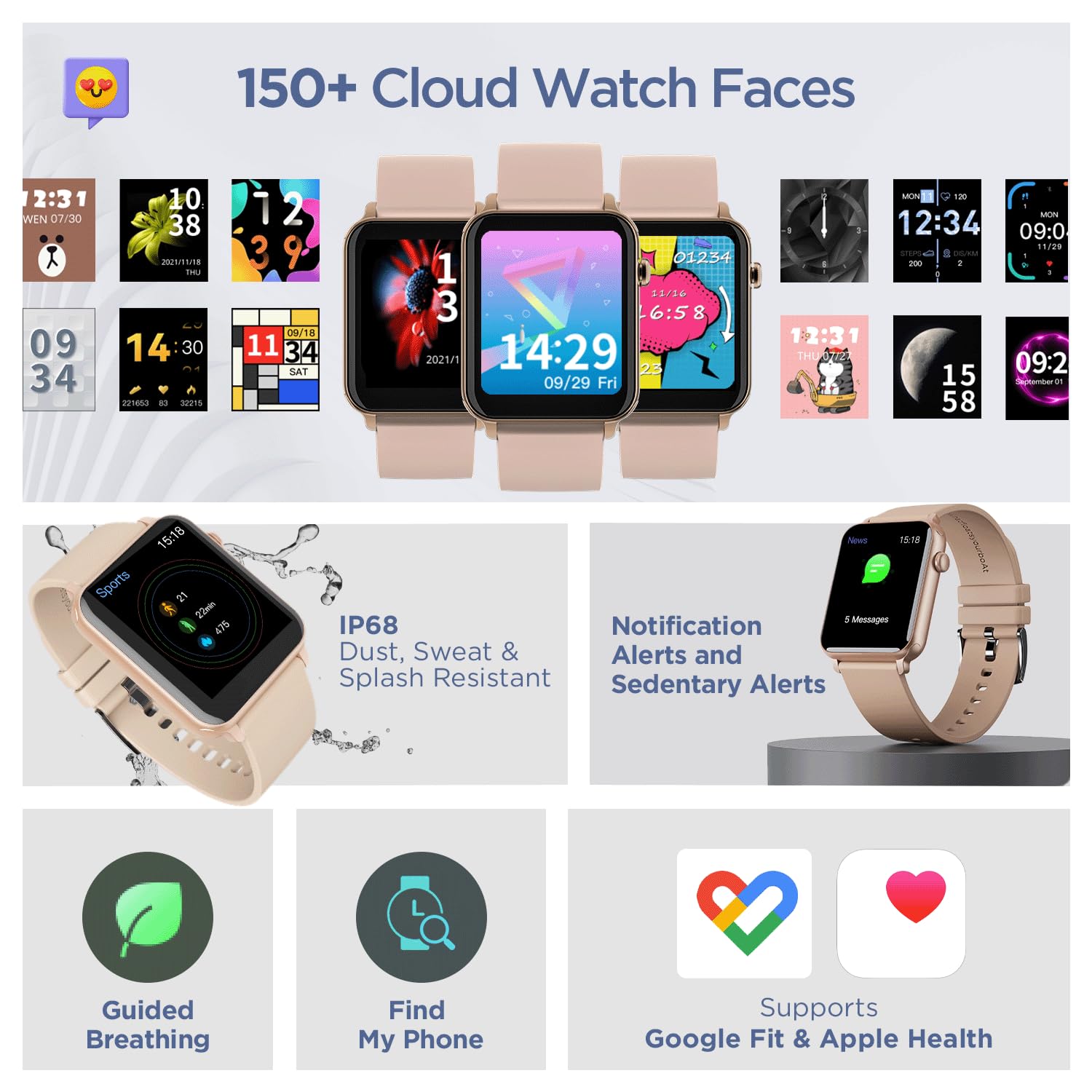With just 45gms of weight, this smartwatch is made for long hours of wearing without discomfort. The silicone strap will compliment your look without compromising on durability and comfort.
