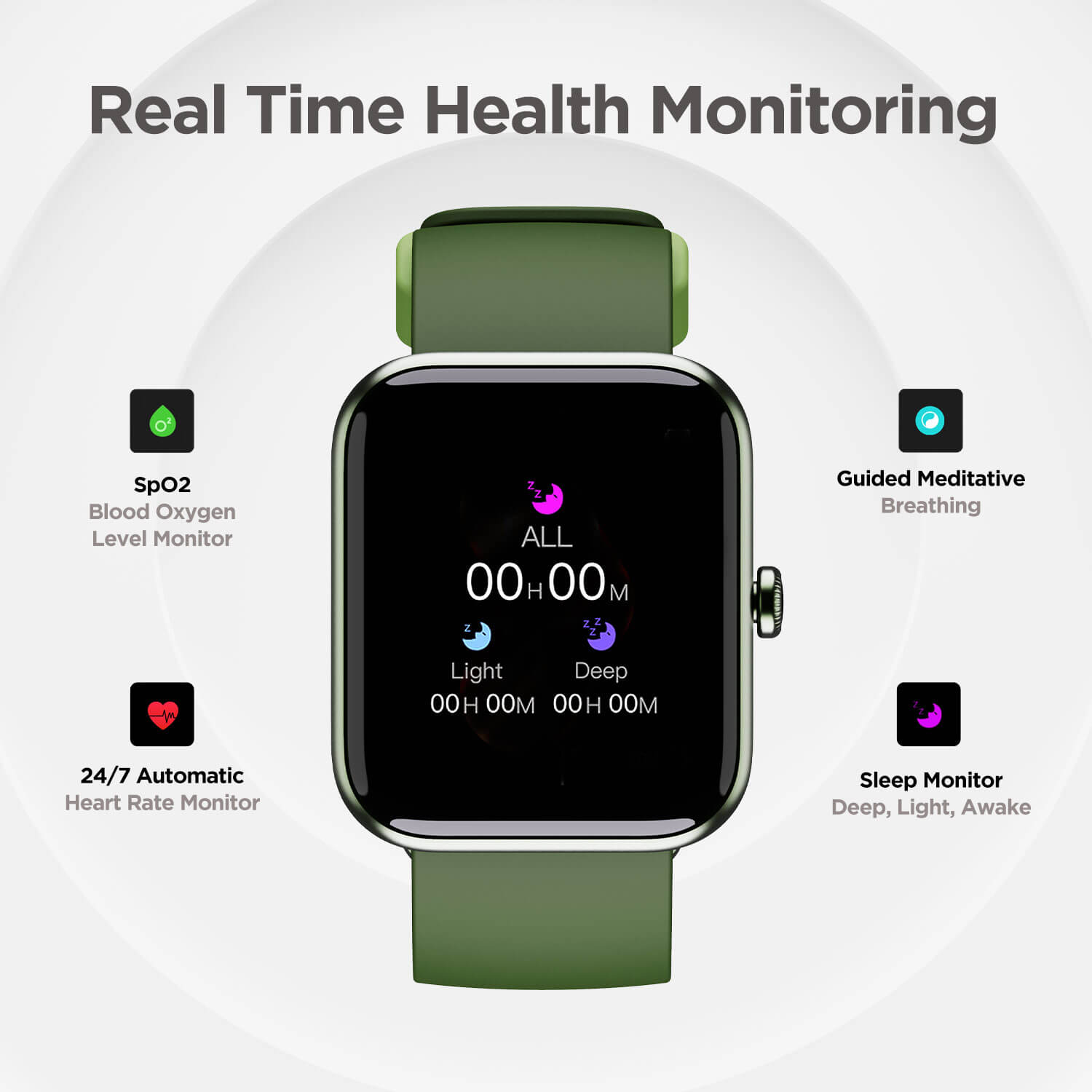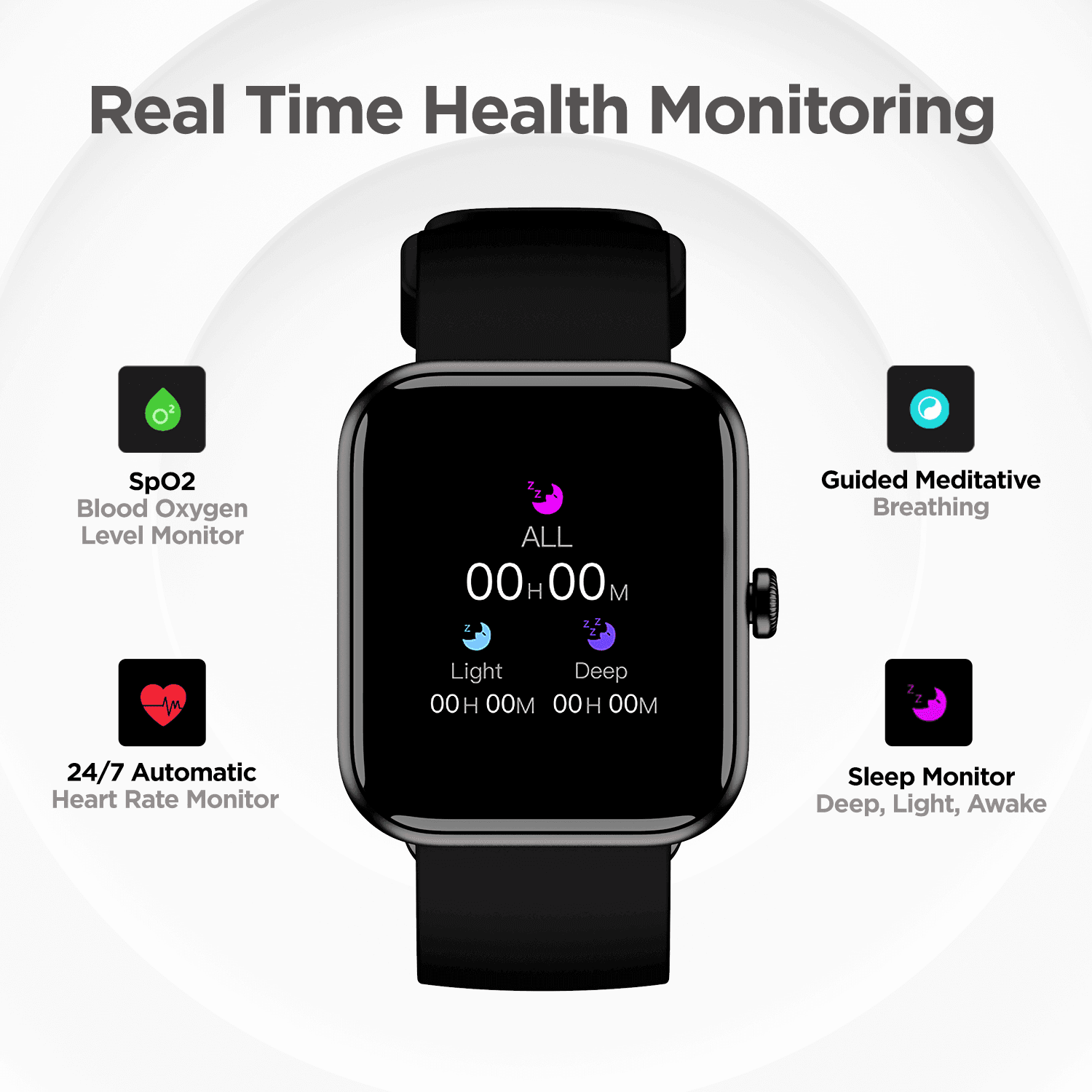 Take charge of your well-being with SpO2 & heart rate monitoring, comprehensive sleep analysis, stress monitoring, guided meditation, and more.